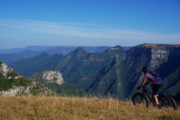 Uma forma de abordar um pedal nos Cânions é chegar até ele – por estradas ou trilhas. Basta ter o percurso. Em alguns chega-se por estradas asfaltadas, noutros por estradas de chão batido, por trilhas ou até mesmo por pedais no campo aberto, onde você escolhe o caminho. E mesmo nos que são de fácil acesso para quem pedala pode-se acrescentar grandes desafios com as subidas de Serra: Rocinha, Rio Do Rastro, Faxinal e Corvo Branco, ou as várias “trilhas de tropeiros”. Outra abordagem possível é conhecer o cânion por diversos ângulos, contornando suas bordas superiores.